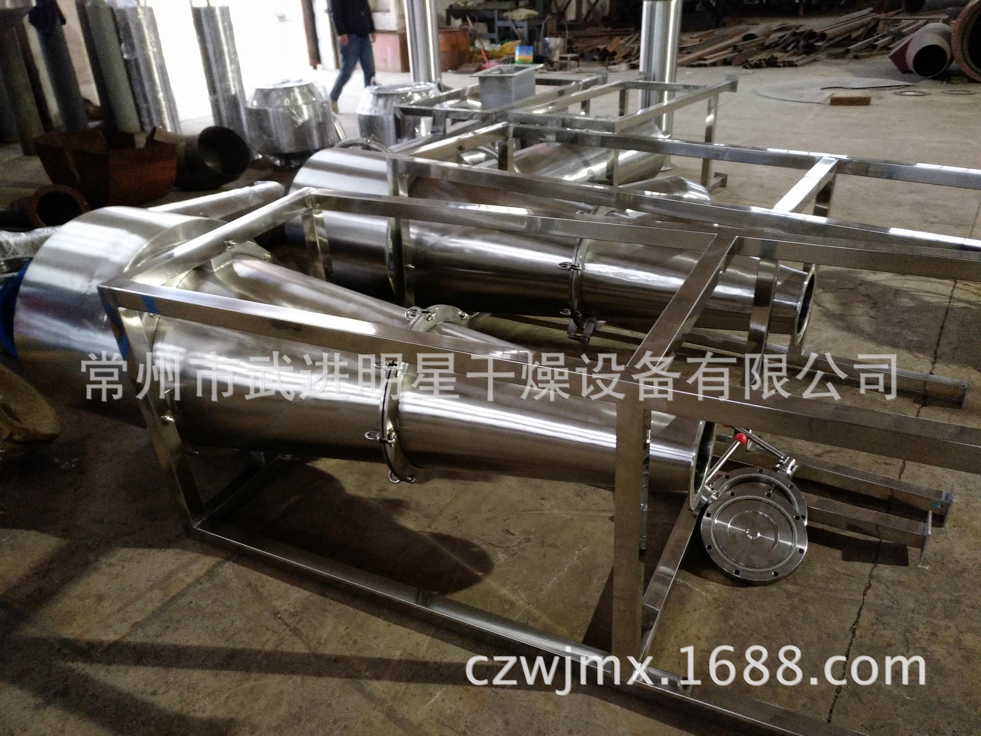 圖為中國科學院北京應用化學研究所訂購的SXG-4型閃蒸干燥設備配用的CLK高效擴散式旋風除塵器(用于收集超細膨潤土材料,含水率<1%)